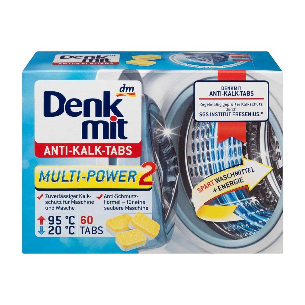 Вироблено для внутрішнього ринку Євросоюзу. Європейська якість перевірена часом. Denkmit Anti-Kalk подвійної дії: він забезпечує надійний захист від вапна та білизна. Очищення відбувається завдяки лимонній кислоті, що входить до складу. Перед використанням обовязково зняти захисну плівку. Одна таблетка — одне застосування. Додавати разом із засобом для прання. Температурний режим 20-95 °C.