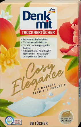 Denkmit Trocknertucher Cosy Elegance 36 шт - ароматизовані салфетки для білизни, рушників, одягу в сушці.