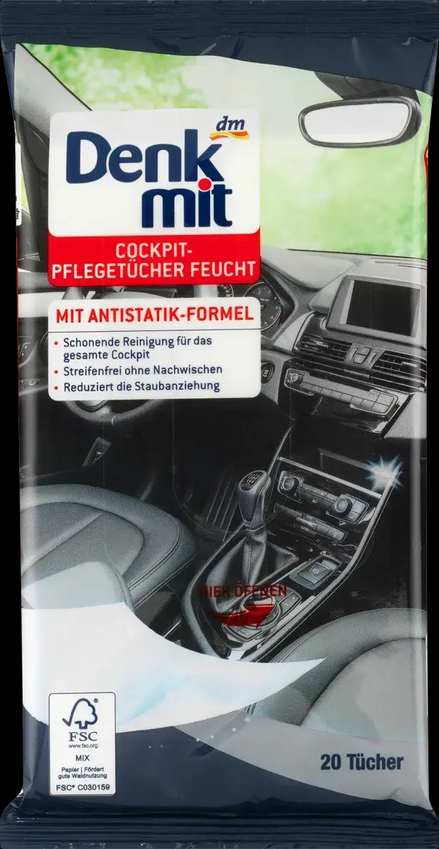 Вологі серветки для догляду за автомобілем Denkmit особливо підходять для чищення та догляду за пластиковими поверхнями в кабіні автомобіля.