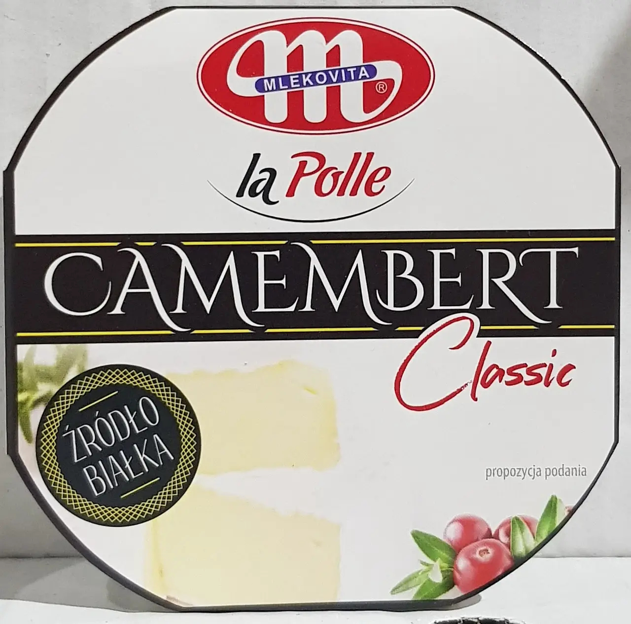 Camembert Mlekpol La Polle Camembert Classic— м'який сир із ніжною консистенцією й оболонкою, покритою білою цвіллю.