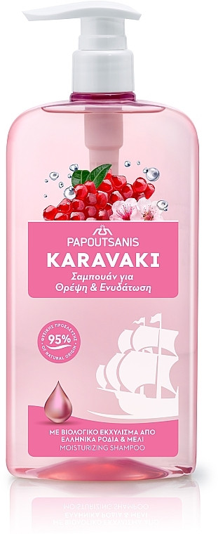 Шампунь з дозатором Papoutsanis Karavaki Moisturizing Nourishment&Hydration Зволоження та живлення з ароматом гранату та меду 600мл
