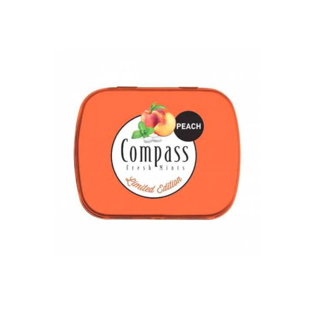 Льодяники без цукру Powermints Compass Fresh mints Peach цукерки Персикові з мятою 14г