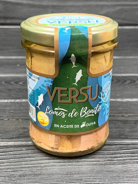 Філе тунця Versu Lomos de Bonito - це шматочки-кубики ніжного філе тунця, зануреного в оливковій олії, (вага 125г, нетто 190г)
