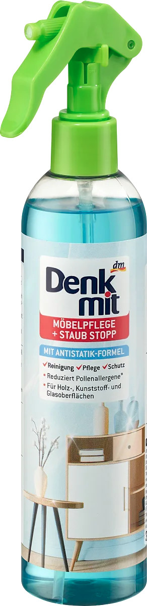 Спрей Möbelpflege від Denkmit пропонує ефективне рішення для підтримки найрізноманітніших поверхонь в домі. Незалежно від того, чи це пластикова, металева, скляна або герметичне дерево - Спрей чистить ретельно і в той же час захищає від більш швидкого налипання пилу завдяки його інноваційній антистатичній формулі.