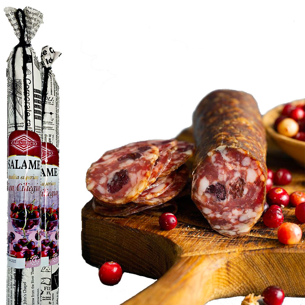 Ковбаса сирокопчена Carnificio Salame сon Ciliegia Саламі Карніфіціо з Вишнею свинина в натуральній оболонці Палочка 280г