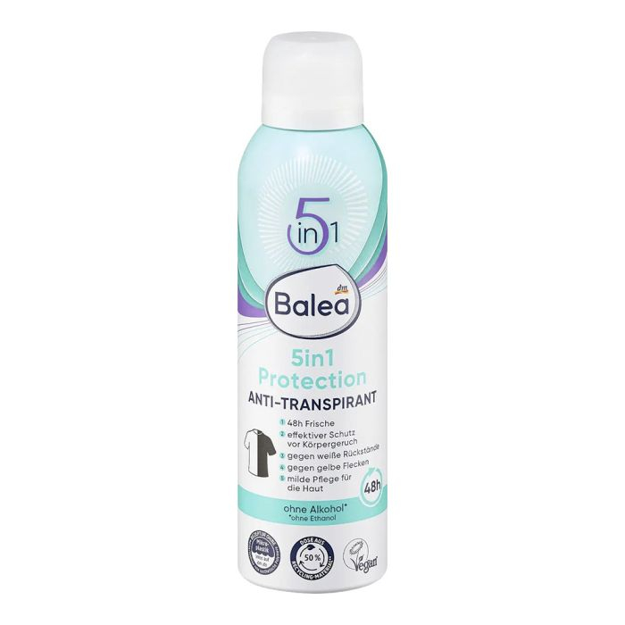 Дезодорант Balea 5в1 забезпечує тривалий захист від запаху поту. Формула, що не містить спирту, дбайливо доглядає за шкірою і не залишає білих або жовтих слідів на шкірі чи одязі. Завдяки дезодоранту від Balea ви будете захищені до 48 годин і зможете працювати на повну силу зранку до вечора. Для приємного відчуття свіжості шкіри.