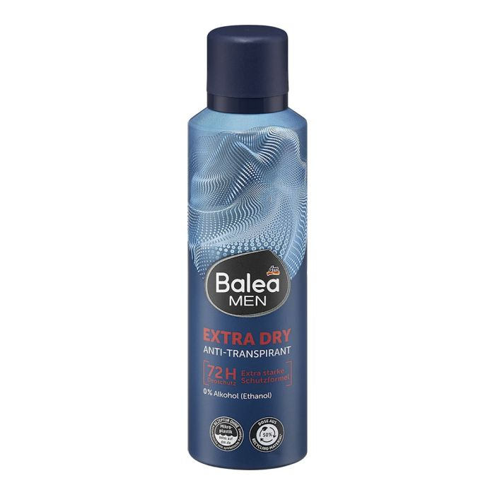 Дезодорант Balea Men Екстра Dry - саме те, що треба для спекотних літніх днів. Засіб також підходить для чутливої шкіри після гоління, його можна розпилювати в пахвові западини. Він надійно захищає від неприємного і дратівливого запаху поту до 72 годин, зволожує чутливу шкіру пахв і має освіжаючий запах.