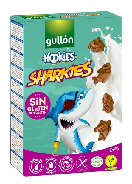 Дитяче печиво Безлактозне Фігурне Gullon Hookies Sharkies mini Cereals Гуллон міні Пластівці Злакові мультяшні Герої Коробка 250г