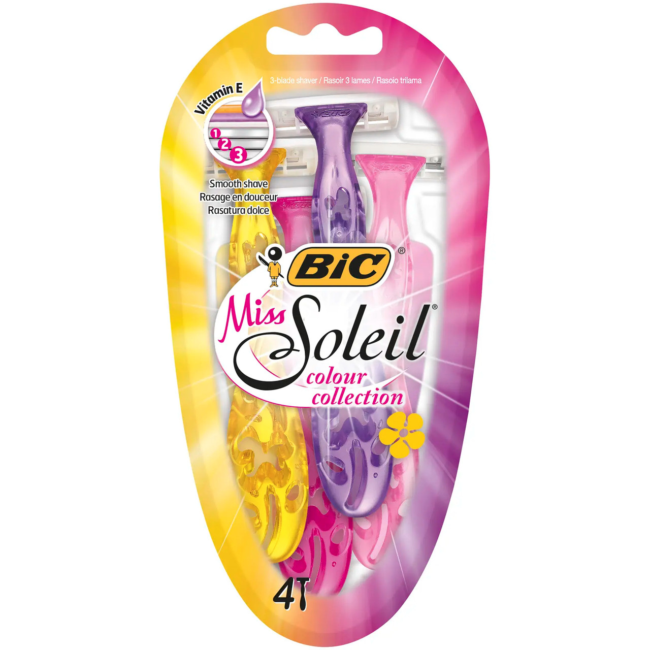 Бритви для гоління Жіночі Bic Miss Soleil colour Collection Бік кольори Белла Солейл станки одноразові Змащувальна змужка 4леза 4шт
