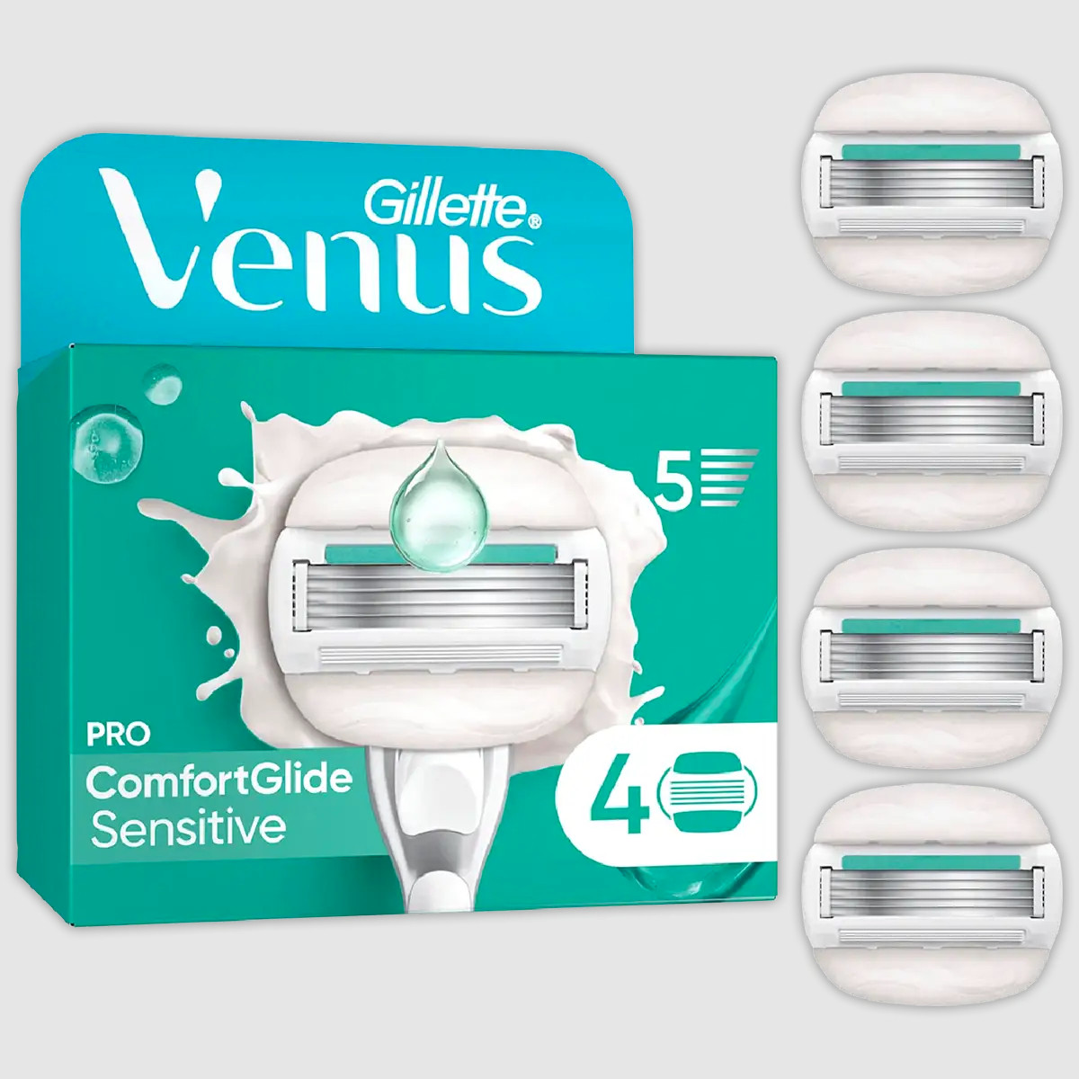 Касети Леза змінні Бритви Жіночі Gillette Venus Pro Comfort Glide Sensitive 4Pac Картріджі одноразові Сенсітів Змащувальна змужка 5лез 4шт, для Чутливої шкіри