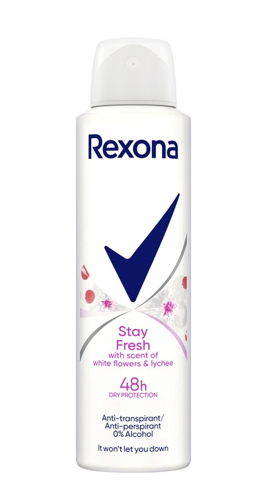 Хоч би якими були ваші плани на день, не треба боятися плям від поту на одязі. Антиперспірант та антитранспірант Rexona Stay Fresh 48h Dry protection оберігає вас від конфузів, спричинених неприємною появою плям під пахвами. Завдяки своїм антиперспірантним складникам він активно протидіє самому виробленню поту й допомагає зберегти шкіру сухою. Засіб забезпечує тривалий захист від неприємного тілесного запаху й небажаного пітніння, тож ви можете насолоджуватися відчуттям свіжості й чистоти протягом усього дня та до 48 годин забеспечує захист від зволоження.