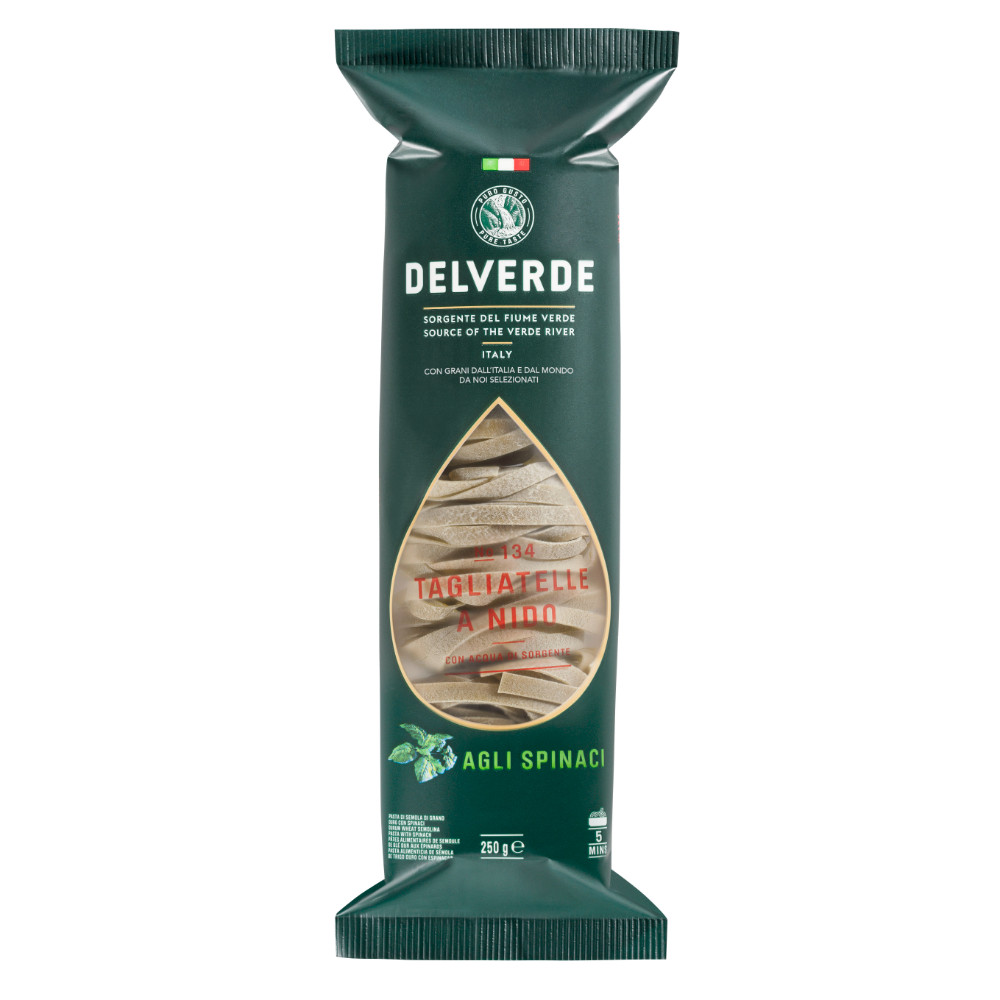 Макарони Тальятелле №134 Delverde Tagliatelle Nido Agli Spinaci Дельверде Паста довгі широкі Стрічки з Шпинатом 250г