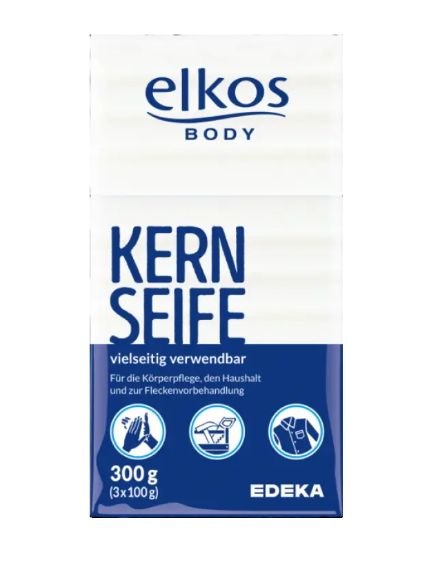 Edeka Elkos body пропонує любителям бездоганної чистоти природне господарське мило плямовивідник Elkos Body Soap Kern-Seife. Високоефективна формула допоможе видалити навіть найскладніші плями із зон, найбільш схильних до забруднень: комірів, рукавів і пахв. Губна помада, кров і навіть чорнило для цього засобу легке завдання.