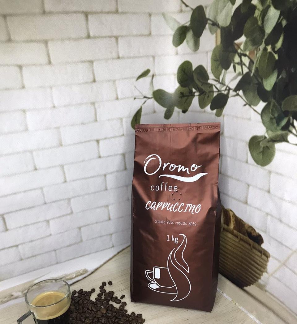 Кава зернова Oroma з смаком капучіно 1 кг 20 % арабіка 80% робуста
