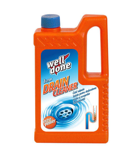 Well Done С-во для чищення труб Drain cleaner, 1 л Drain cleaner для чищення труб — універсальний засіб, який найкраще за інших видаляє всі типи відкладень, навіть найбільш застарілих. Завдяки активним речовинам, засіб швидко проникає до місця забруднення й інтенсивно його розчиняє. Ідеально підходить для всіх типів труб