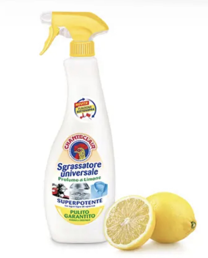 Універсальний очисник — спрей ChanteClair Universale Sgrassatore — це універсальний засіб для чищення будь-якого забруднення. Розроблена на основі передових наукових технологій. Високонцентрований. Ідеально підходить для чищення: печей, витяжок, гриля, кухонного посуду, інших кухонних поверхонь, ванної кімнати. Може бути використаний у будь-якій зоні, починаючи від кухні до професійного використання. Виводить як жирні, так і олійні плями мінерального або рослинного походження. Ефективно для попередньої обробки сильних забруднень білизни.
