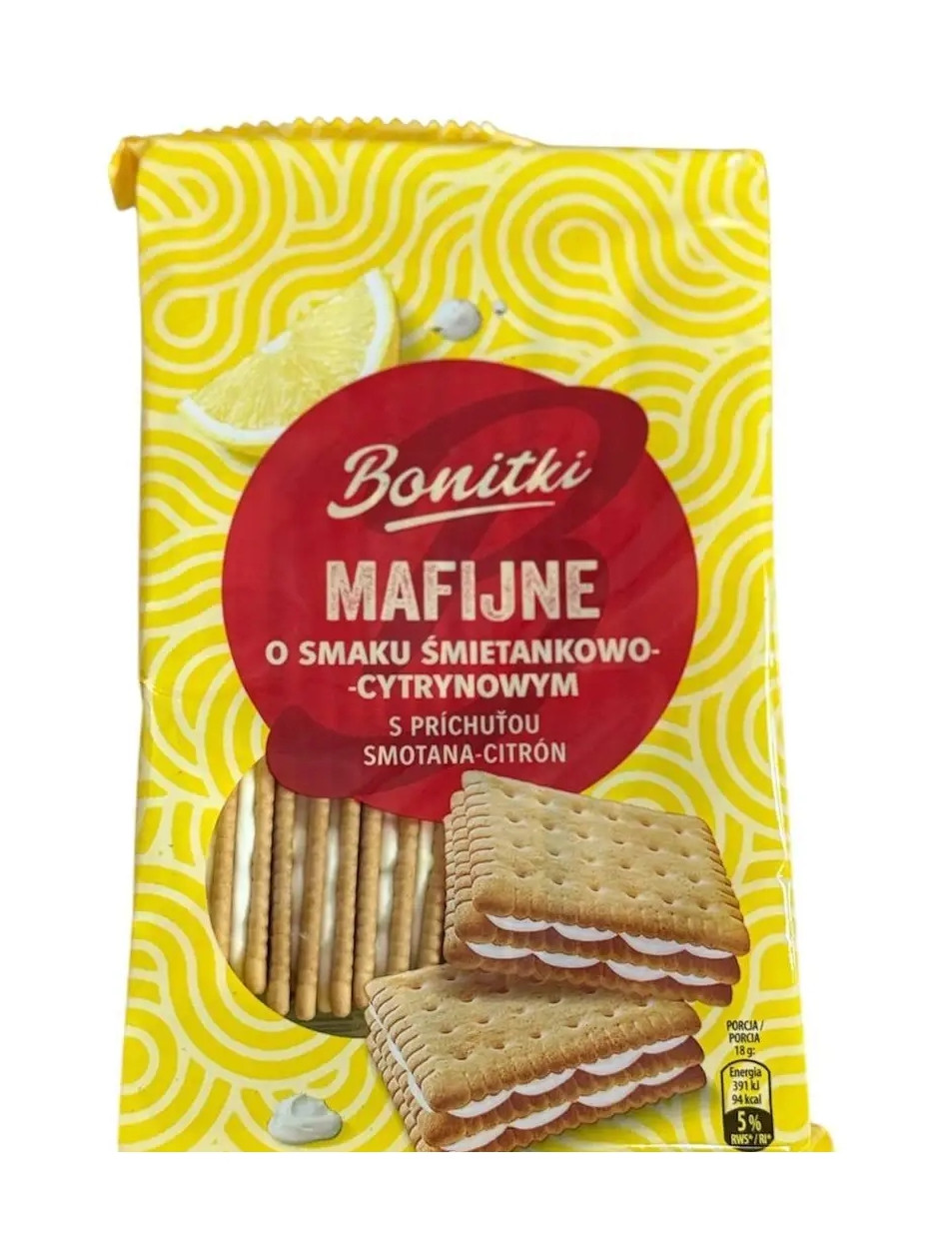 Печиво Мафіни Сендвіч Biedronka Bonitki Mafijne Smietankowe Lemon Боніткі з вершковим та Лимонним кремом 18шт 330г