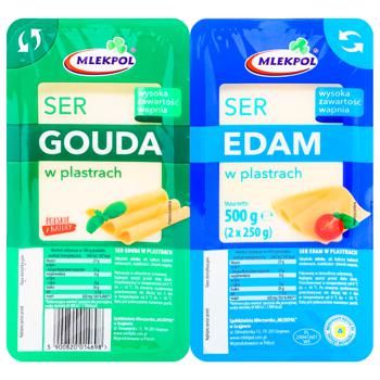 Набір сирів Mlekpol Gauda&Edam Mix мікс Гауда та Едам 2х250 нарізка 500г